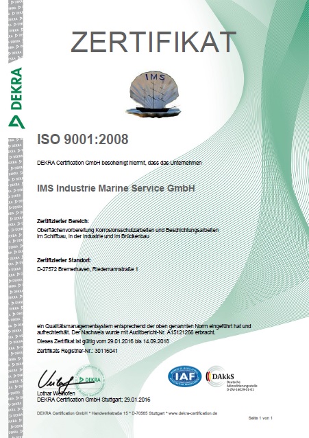 in den Bereichen Schiffbau, Industrie und Brückenbau, ausgestellt durch die DEKRA Certification GmbH